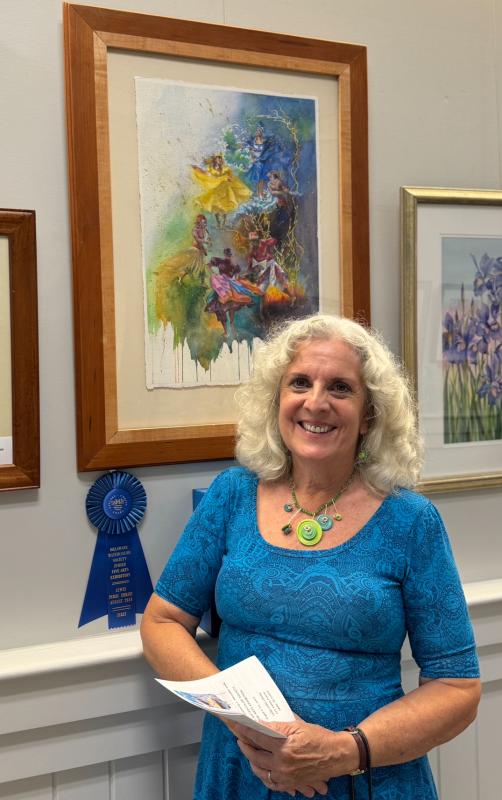 Notable pieces include "Cuban National Folklore Ensemble" by C. Mercedes Walls, which won first place; “Ocean in Motion" by Joan Judge, second place; and "Costa Rican Thirst Quenches" by Isabel Pizzolato, third place. Juror Linda JC Turner gave merit awards to "Beach Bikes" by Christine Heyse; "Lewes Vacation” by Leo Kahl; and "Special Delivery” by Wendy Leddy.