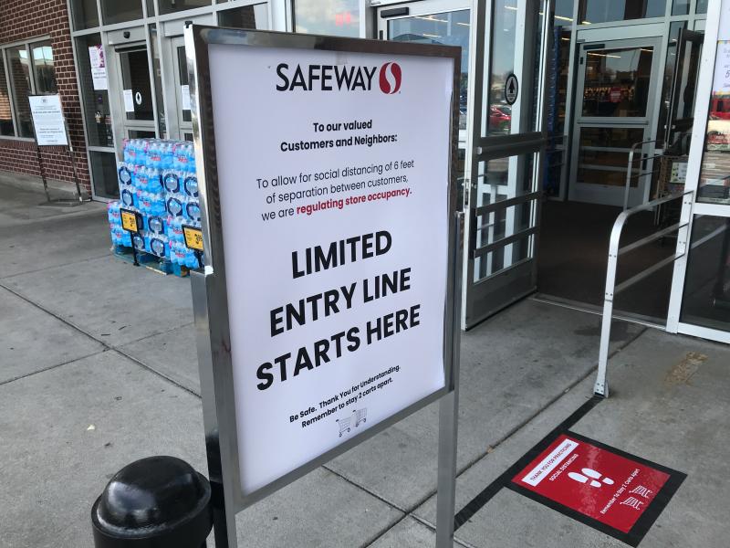 A monitored line for shoppers at Safeway near Rehoboth Beach starts at the door in compliance with restrictions on how many people can be in a store at one time.