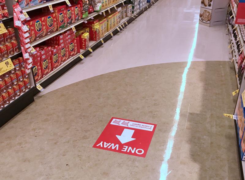 Many local grocery stores, such as Giant near Rehoboth Beach, now have one-way aisles to promote social distancing.