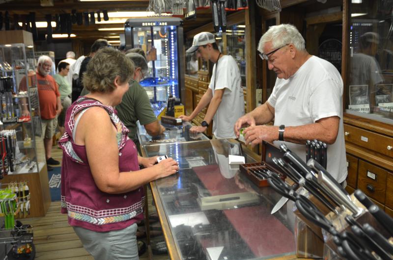 While Matt has taken over the knife-handling portion of the business like his dad, Geri has taken over the numbers side like her mom. However, for Customer Appreciation Day, it was all hands on deck to help with customers; Geri was in the showroom inside an old chicken house that had been converted years ago to accommodate the growing business.