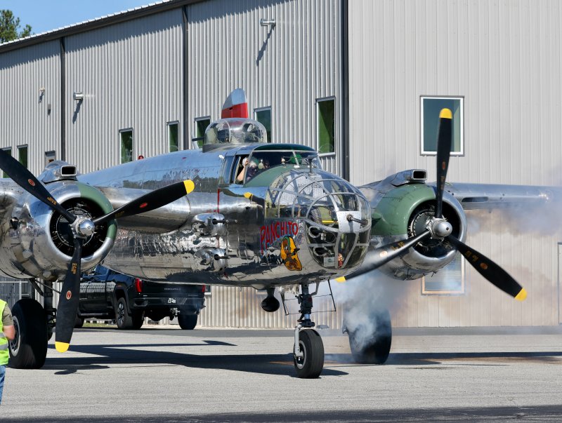 Panchito, the B-25 bomber based at the airport, is always a favorite when it roars off the runway to give rides around Sussex County.