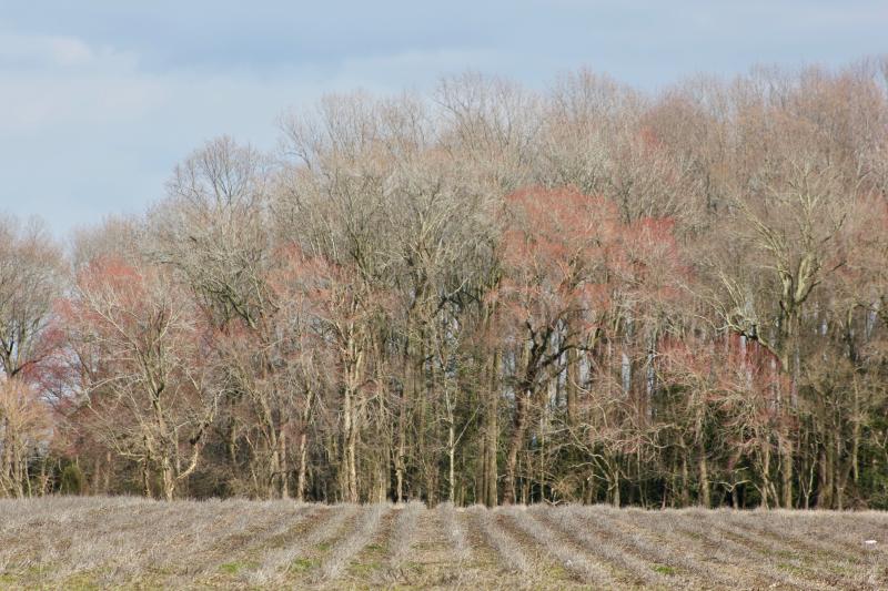 The seasons are changing and it’s a beautiful thing. Outside, along the roads and highways, I look to the woods lines to see redness in the tops of trees as one of the early signs of emerging spring. I saw these Saturday afternoon along Route 1, beyond a soybean field, between Milford and Lewes.