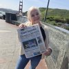 Lisa Emery stands at the Golden Gate Bridge, holding the Cape Gazette. Spanning 1.7 miles across...