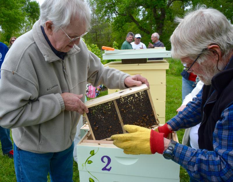 On May 11, club members met with Hoover and Lord to transfer the bees to their new homes. “They are only just getting started,” Hoover said. “In a few weeks we will not be able to manipulate the bees like we are today.”