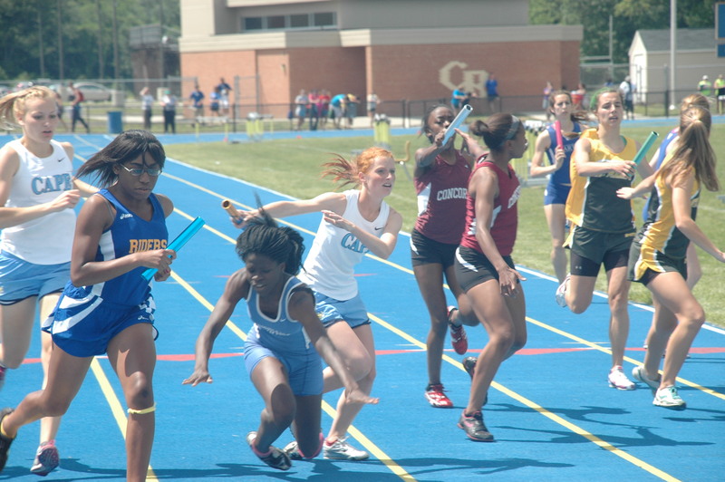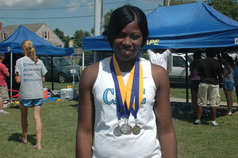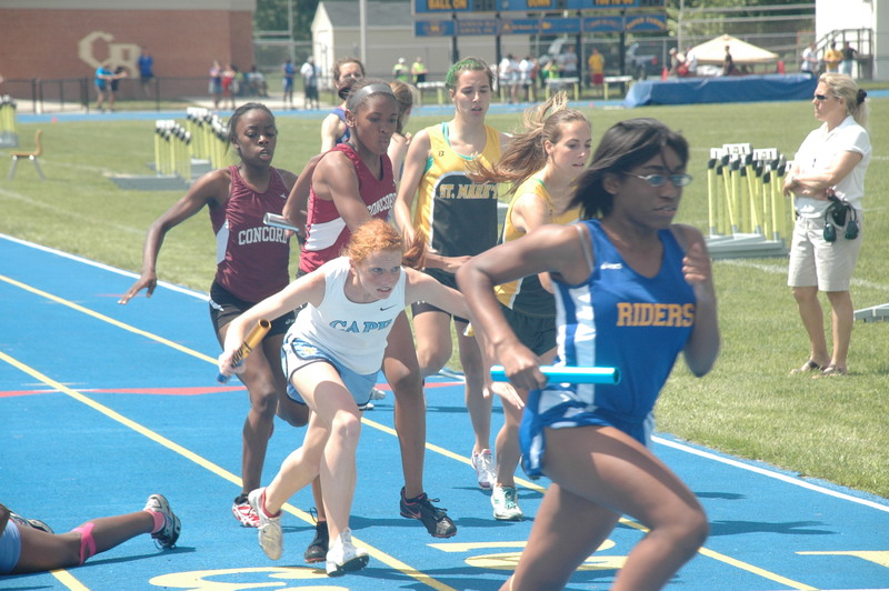 Cape’s team of Hannah Pepper, Ali Coning, Megan Hart and Shanel Dickens got through all the crowded exchange zones and placed second in the race to win the state championship meet with 91 points. Christiana was second with 84.5, followed by Charter 72, William Penn 66, Saint Mark’s 65 and Delcastle 55.