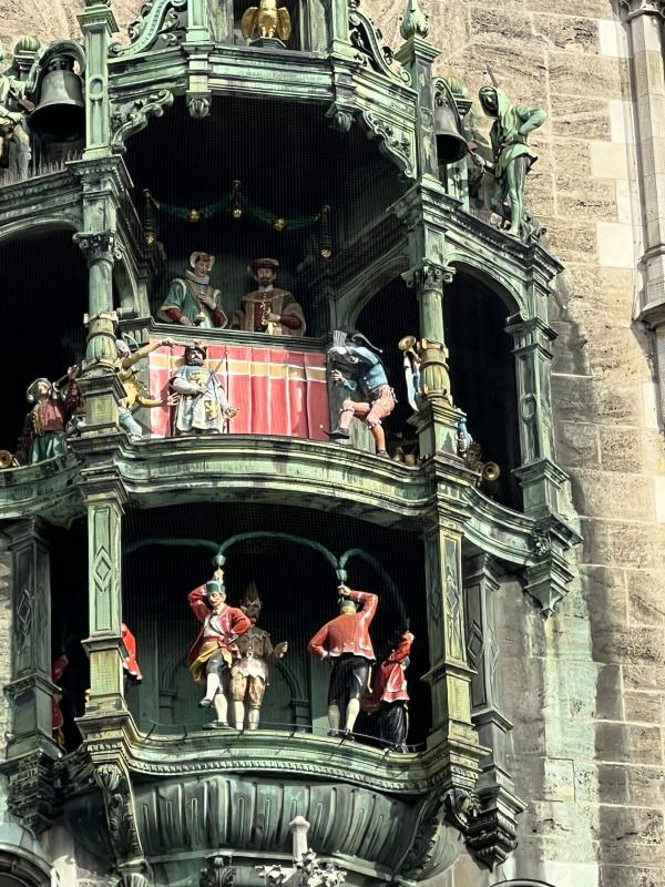 There are some differences. Munich is near Dachau (where we visited the concentration camp, so sad and powerful). Salzburg isn’t near much except more Alps. In Munich it is necessary to take trams to get from one side of the city to the other; Salzburg is eminently walkable. Munich has a famous glockenspiel in Marienplatz, with figurines that move around on the tower face every few hours. Salzburg has The Sound of Music, which everyone seems to adore, but about which we are lukewarm. We prefer the city’s Mozart everything—his birthplace, his residence, the cathedral where many of his works were performed. Mozart square and statue too. But yes, if you want, you can see the spot where “Do-Re-Mi” was filmed. Whatever floats your boat.