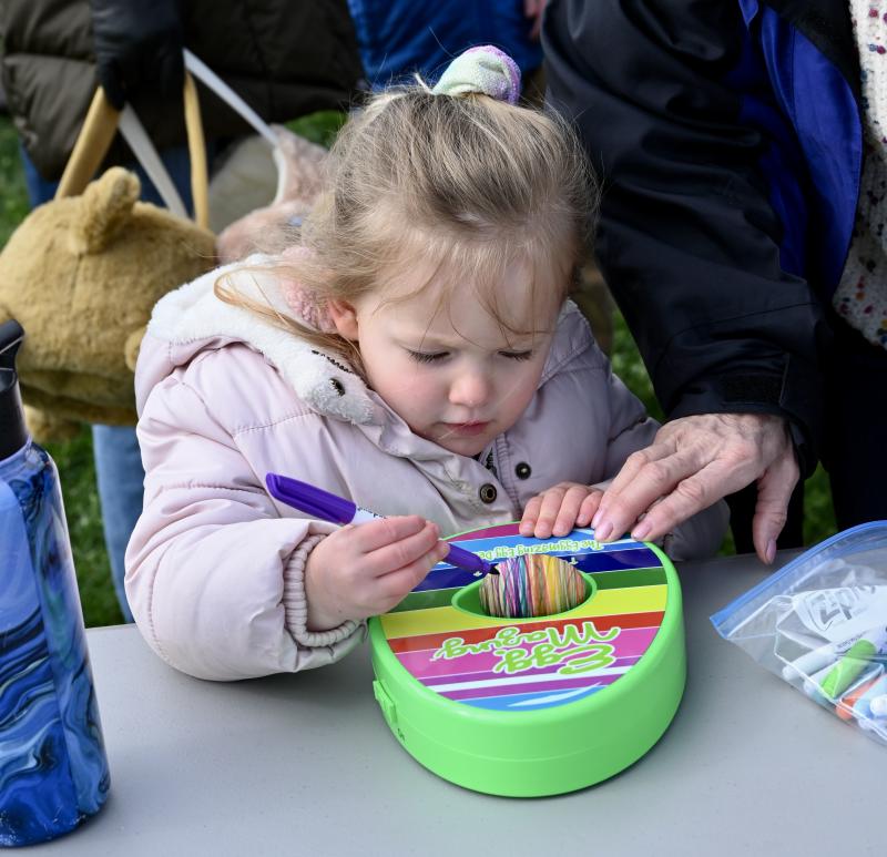 Emma Robins, visiting from Chadds Ford, Pa., is fixated on decorating her egg during the Easter event at Lewes Canalfront Park.