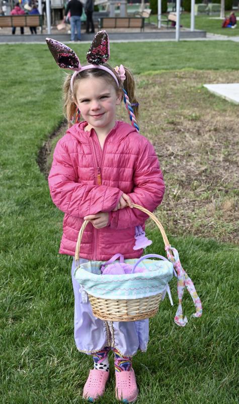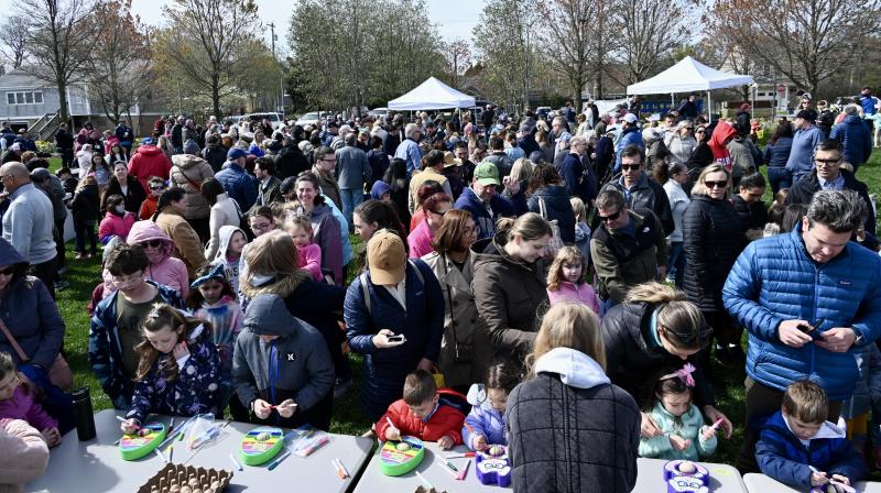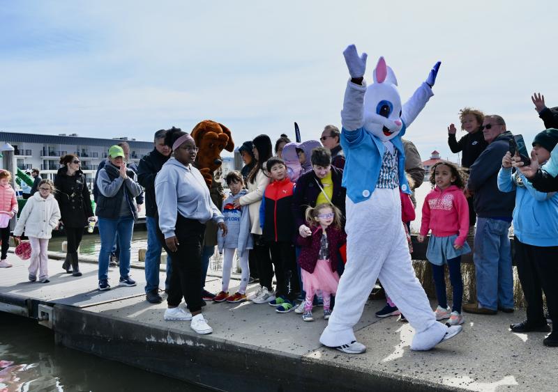 A large crowd filled Lewes Canalfront Park April 8 to celebrate the annual Bunny Bonanza, which included arrival of the Easter Bunny on a Freedom Boat Club pontoon boat. Escorted by the Sea Sisters, the bunny arrived exactly at 10:30 a.m. Even before he docked, excited youngsters had gathered to greet him.