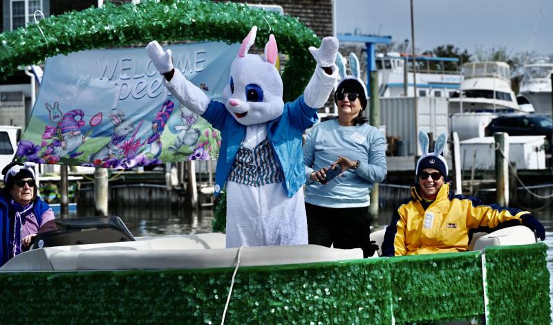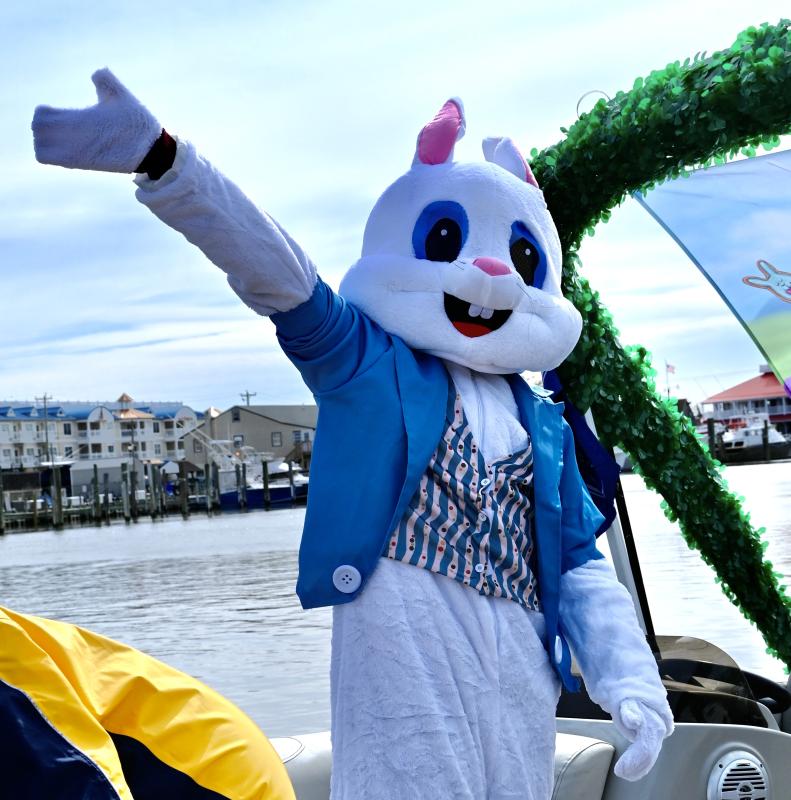 The guest of honor has arrived. The Easter Bunny waves to the large crowd from his Freedom Boat Club Sea Sisters escort down the Lewes-Rehoboth Canal.