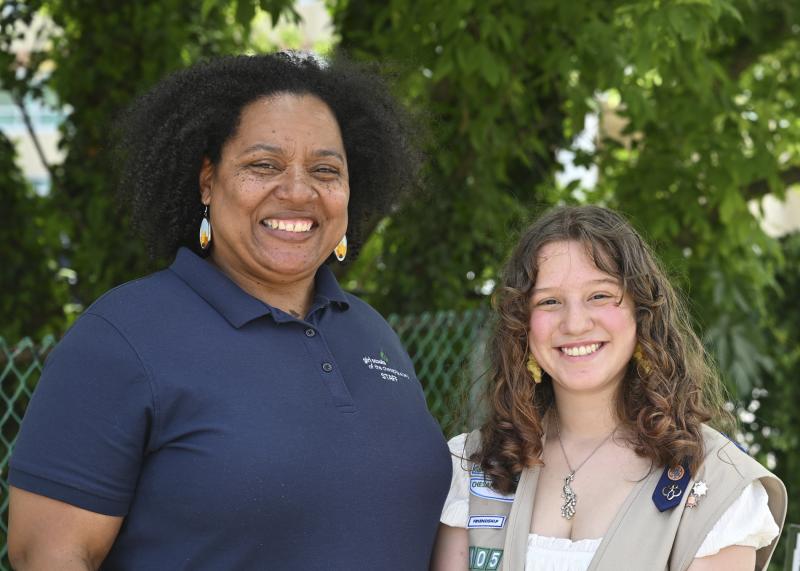 Dizza Whaley, associate director of programs and the Gold Award staff liaison for the Girl Scouts of the Chesapeake Bay, congratulates Adrianna Kollar.