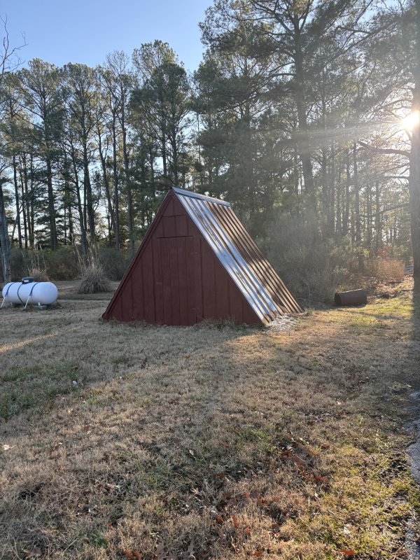 The expansive yard provides space to garden, expand, or simply enjoy the peaceful wooded backdrop. A storage shed and classic A-frame pumphouse add both character and practical functionality to the property.