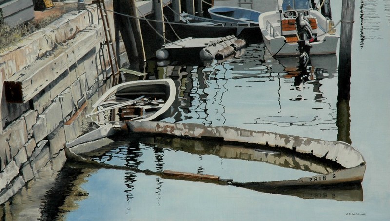 Rogers said they begin each excursion with no agenda and the creativity evolves naturally. When first arriving on location each artist goes his or her own way and photographs areas of interest, then they regroup and spread out the pictures. There is always one or more scenes they all have in common, and from there comes a short list of things to paint. The work in this upcoming show features their most recent trips; Chester County, Md.; Leipsic; Cape Charles, Va.; and their favorite, Tangier Island, Va., 12 miles from mainland Virginia and accessible by ferry from Crisfield, Md.