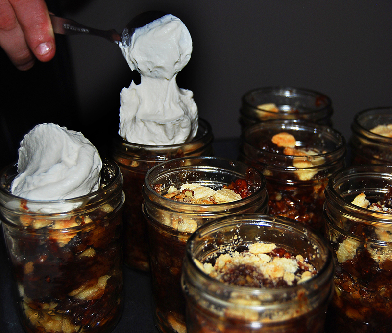Burkle topped off the class with pecan pie. But get this: The buttery crust, pecans, chocolate chips (and of course bourbon) were deconstructed and presented vertically in a Mason jar. The towering treat was topped with a dollop of freshly whipped cream.