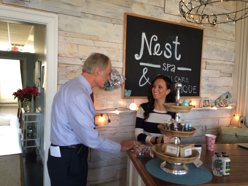 Joined by Milton Chamber of Commerce Executive Director Lisa Sumstine, Carper visited The Mercantile at Milton, as well as the three businesses promoted during last year's state Project Pop-Up program: Wine Knot Shop, P.C. Rods and Nest Spa & Skincare Boutique.