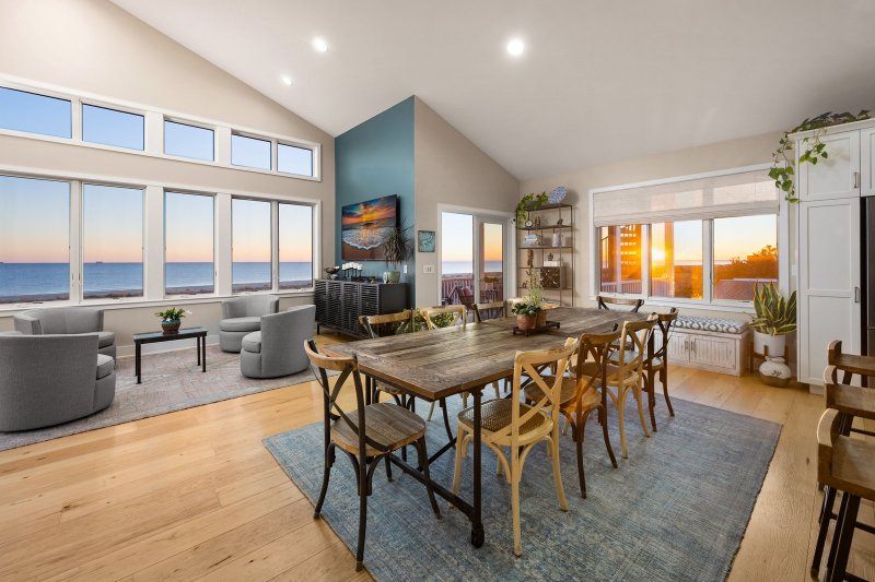 A Bayfront Sanctuary Where Every Sunrise and Sunset Steals the Show Welcome to your private coastal retreat—where modern luxury meets timeless tranquility. Perfectly positioned on the serene shores of Broadkill Beach, this 2017 custom-built bayfront residence captures the essence of waterfront living with sweeping 360° views, seamless indoor-outdoor design, and elegant, sun-filled interiors. Wake up to the sound of gentle waves and golden light reflecting off the Delaware Bay. Step onto one of your many balconies with coffee in hand as dolphins glide by in the distance, or gather with friends on the roof top deck and beach, as the evening sky transforms into shades of coral and violet over the refuge. Every level of this home is thoughtfully designed to frame the beauty of the bay—offering sunrise and sunset views that change with each season, yet always inspire awe. Inside, over 3,000 square feet of refined coastal architecture await. With 5 spacious bedrooms and 3.5 bathrooms, this residence offers both intimate family comfort and open spaces ideal for entertaining. The inviting great room centers around a spectacular stone fireplace and flows effortlessly to multiple decks—perfect for savoring the views and sea breeze. The chef’s kitchen is a coastal showpiece, featuring high-end finishes, custom cabinetry, and an expansive island—ideal for hosting brunches or sunset dinner parties. Every detail, from designer lighting to thoughtfully curated flooring, reflects a commitment to quality, sophistication, and effortless seaside living. Outside, the 75X100 landscaped lot has been artfully designed for both beauty and function, with premium side yards, secure storage, an outdoor shower, and extensive hardscaping that complements the home’s natural surroundings. A concrete driveway with space for six vehicles ensures ample room for guests eager to share in your waterfront lifestyle. Just steps away, the sandy beach invites morning walks, paddleboarding, or kayaking across the calm bay waters. As night falls, ascend to your private rooftop deck to stargaze beneath an endless coastal sky—a signature Broadkill Beach experience found only in homes of this caliber. Whether as a primary residence or a luxury coastal escape, this rare offering promises more than a home—it delivers a lifestyle defined by peace, beauty, and connection to the water. Sellers are open to negotiating the purchase of the brand-new Kawasaki Beach Buggy, paddleboards, kayaks, and Sunfish on a separate bill of sale making for instant beach enjoyment and fun memories in the sun.