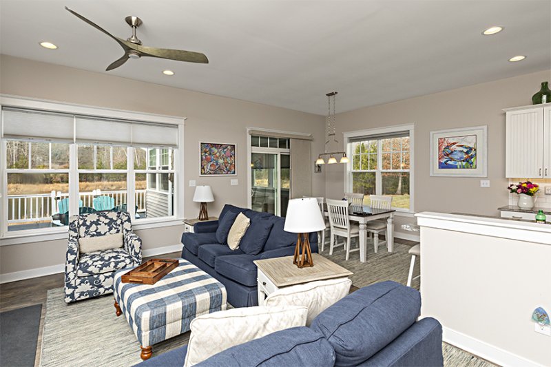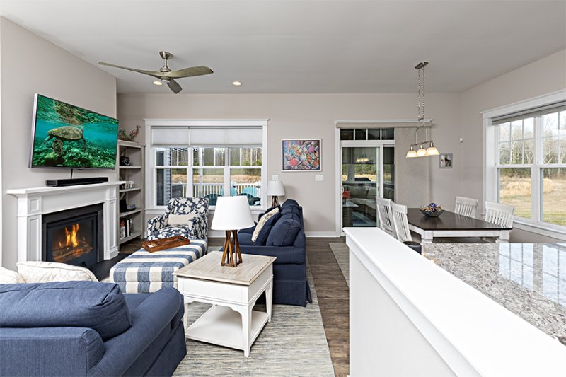 Experience the pinnacle of coastal-lifestyle comfort in this stunning Wilkinson Homes custom ranch, where every detail has been thoughtfully curated for effortless main-level living. The heart of the home is a spacious great room anchored by a cozy fireplace and a wall-mounted flat-screen TV, flowing seamlessly into a gourmet kitchen featuring stainless steel appliances and luxury vinyl plank flooring that carries through all common areas. Beyond the interior lies an outdoor retreat unlike any other: a rear deck spanning the entire length of the home where whether you are relaxing in the three-season room off the dining area, enjoying the private sunroom/sitting room attached to the primary suite, or soaking in the hot tub under a custom pergola, you’ll be treated to breathtaking views of the serene pond and the lush, wooded backdrop. Custom built-ins in every closet & laundry room and an oversized one car garage with storage shelving maximizes your storage possibilities. Unlimited activity opportunities with the close proximity to the beaches and the community clubhouse/fitness center/pool, in combination with unparalleled sunset views, creates a home that offers a rare blend of luxury and tranquility perfectly suited for the active adult.