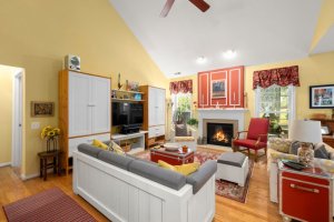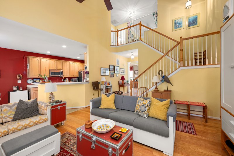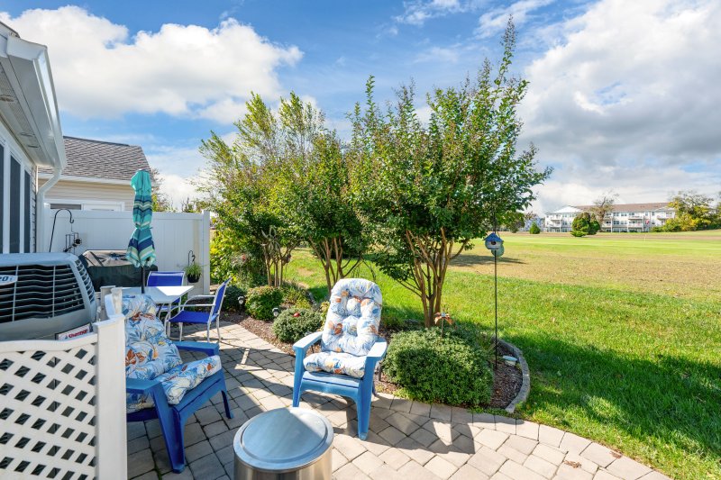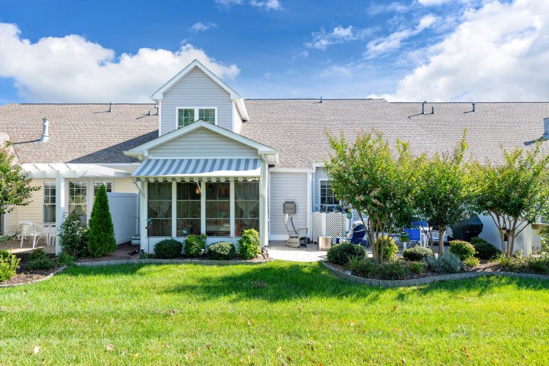East of Rt 1 – Charming Carriage House in the highly sought-after 55+ Bay Crossing community! This meticulously maintained town home is just minutes from downtown Lewes, the famous Rehoboth Boardwalk, Cape Henlopen State Park, dining, and shopping, yet offers a private coastal retreat. Bay Crossing provides tree-lined streets, expansive green spaces, a clubhouse, fitness center, pool, tennis courts, and abundant social activities. Lawn care is provided by the community too, making every day seem like a vacation. With over $60,000 in updates, this home is truly move-in ready. The spacious first floor features gleaming hardwood floors, a dedicated dining area (or office), and flows seamlessly into the Great Room with vaulted ceilings and large windows overlooking the 8th Hole fairway green. A new gas fireplace and UV-protected windows enhance this cozy heart of the home. The 3-Season Room with new vinyl windows brings the outdoors inside, while the paver patio provides the perfect setting to enjoy coastal breezes. The kitchen boasts GE Cafe stainless steel appliances, ample storage, and generous prep space. The primary bedroom offers a tray ceiling, ceiling fan, and floor-to-ceiling windows. The en-suite bath's remodeled shower creates a spa experience. First-floor updates also include a powder room with a new vanity, light fixture and mirror; laundry room with custom Asko washer and dryer (counter height) and storage cabinets; and new wool carpet on the stairs. Upstairs, one will discover two generously sized guest bedrooms, a large hall bathroom, and a unique "artist’s" loft (140 sq ft)—perfect for exploring creativity. An additional bonus storage room (185 sq ft) off the hall bath adds versatility. Mechanical updates include a new roof (2021), tankless Rinnai hot water heater, a Trane hybrid heat pump, and a Ring doorbell. Additional features include a two-car garage with shelving and a custom workbench. This home combines comfort, style, and distinctive charm in a truly maintenance-free setting - welcome to your Bay Crossing home!