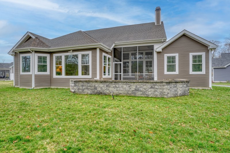 Enjoy a private wooded backdrop from your luxurious owner’s suite, plus spacious guest rooms, a screened porch, and a paver patio perfect for relaxing or entertaining.