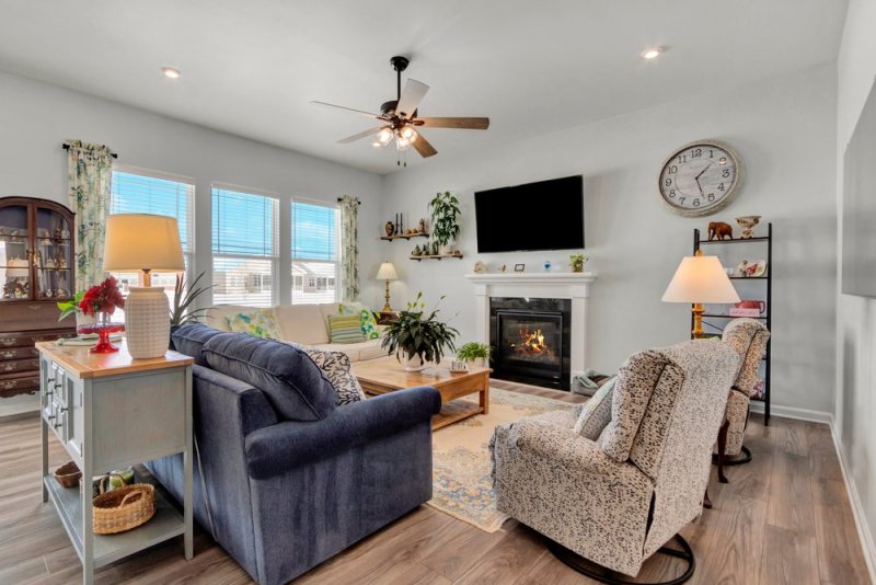 ⭐ Just minutes from the beach and located in a premier resort-style community! It features a thoughtful split floor plan, an open concept layout, a living space with a gas fireplace, a finished basement, an oversized garage, and more. Schedule a showing today! 🏡✨
