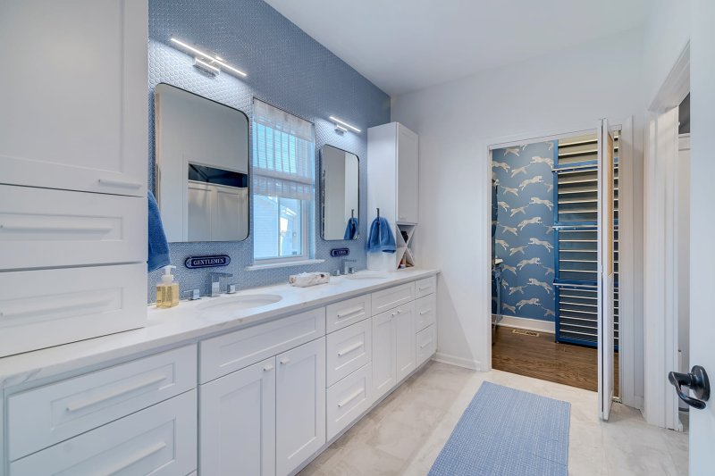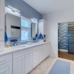 Dual vanities, generous cabinetry, step-in shower with bench, and private water closet support daily comfort.