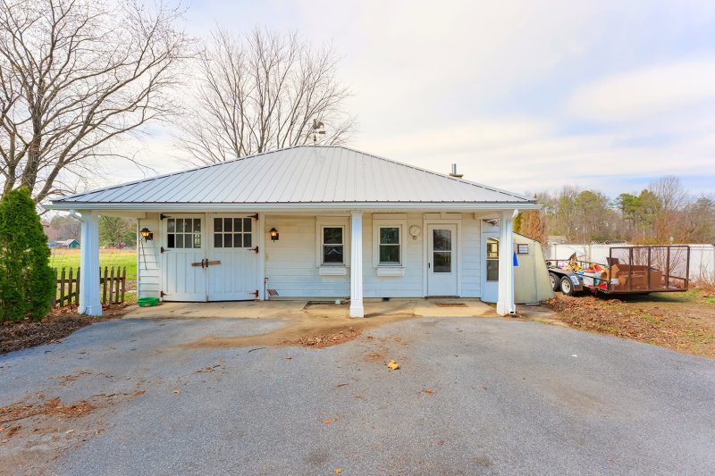 The 1.26-acre parcel offers usable outdoor space with mature privacy trees for a peaceful, tucked-away feel.