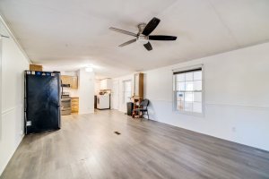 Inside, a light-filled living room with luxury vinyl plank flooring offers easy, low-maintenance comfort.