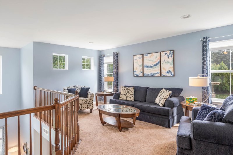 The loft adds valuable flexible space—ideal for a home office, reading nook, or extra lounge area for movie nights and downtime.