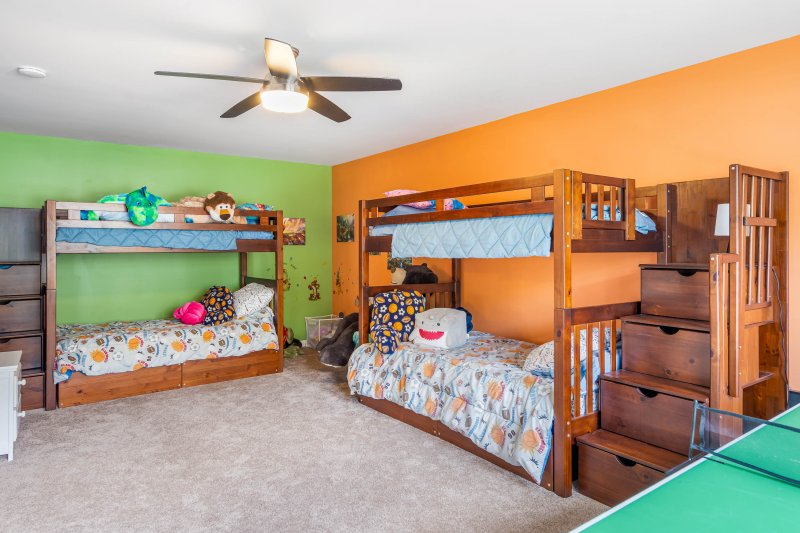 An oversized fourth bedroom provides incredible versatility, easily transforming into a media room, playroom, guest suite, or creative workspace.