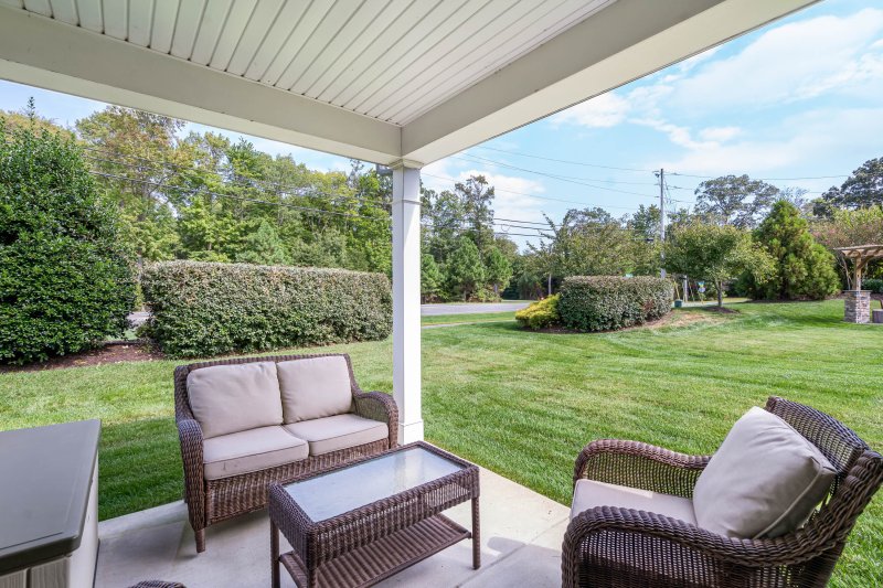 A private outdoor seating area extends the home’s living space, making it easy to enjoy morning coffee, fresh air, or relaxed evenings outdoors.
