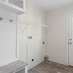 Smart everyday utility: washer/dryer hookups, built-in bench, and organized storage for coats and shoes.