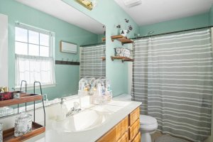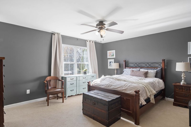 Upstairs, the primary bedroom includes a private bath with a step-in shower and a bright window for natural light.