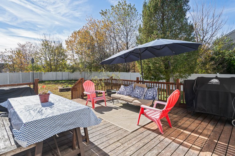 A sliding glass door off the kitchen opens to the deck, making indoor-outdoor entertaining easy.