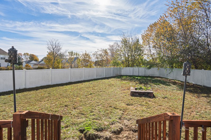 A 6-foot privacy fence frames the backyard, with a firepit ready for cozy evenings outdoors.