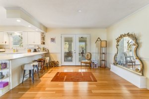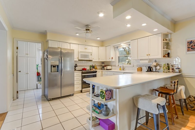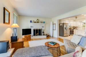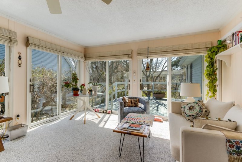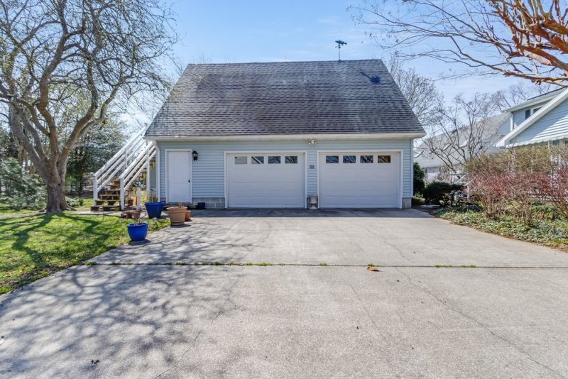 15 Harborview Road Lewes DE 19958 - East of Route 1 and close to the coast, but tucked away in a quiet and tranquil community! 15 Harborview Road is a cozy 4-bedroom, 2.5-bath home situated on a generously-sized lot with mature landscaping. Enter through the front door to gorgeous hardwood flooring and a large and airy living space with a stone fireplace. Follow the open floor plan through to the kitchen, complete with Corian countertops, white cabinets, tile backsplash, a large breakfast bar, and lots of storage and prep space. Overhead recess lighting and large windows brighten up both the kitchen and living areas. The kitchen opens into a spacious dining area with French doors leading to a screened-in porch, perfect for relaxing, entertaining, or dining with an al-fresco feel. A wooden deck with a retractable awning connects the screened porch to the backyard, which is a garden oasis with mature landscaping and a ton of greenery! Each of the four bedrooms is generously sized with storage space, hardwood flooring, and lots of natural light. Two full bathrooms, one with a standing shower, and a half bath complete the living spaces. The property also features a stand-alone two-car garage with workspace and finished upstairs flex space, great for additional guest space, a recreation room, or a home office. This home is the perfect full-time residence or beloved family beach getaway. Close to the beach, Downtown Lewes, and Route 1, this home has everything you need to live a laid-back coastal lifestyle while still living within a close proximity to all of the modern conveniences and amenities you need. Schedule a private showing today!