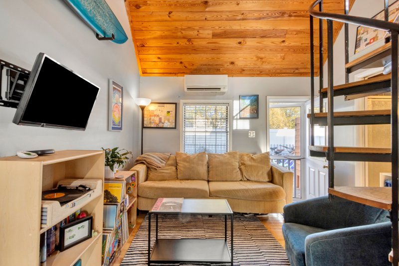 RARE opportunity in coveted Dodds Addition! This charming 2 bed/1 bath beach cottage sits EAST OF ROUTE ONE in the sweet spot between Dewey and Rehoboth - one of the few properties where you can walk to the beach in under 10 minutes AND stroll or bike to both towns' dining, shopping, and nightlife. Park your car on arrival and leave it all week! This efficient 500 sq ft layout maximizes every inch with smart design: an entry-level bedroom, upstairs bedroom, and loft sleeping area accommodates 5 guests comfortably. Outdoor living expands your space with a front deck perfect for morning coffee or alfresco dining, an outdoor shower offering convenience after beach days, plus a private back area ideal for grilling. With plenty of natural light & an open floor plan, hardwood floors on the first level, and the wood vaulted ceiling, this property is full of beach vibes. Whether you're seeking a low-maintenance personal retreat or a proven investment property with past rental income of $50k, this walkable location offers something increasingly rare in the area - the true beach lifestyle with no need to drive!