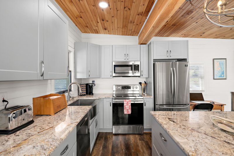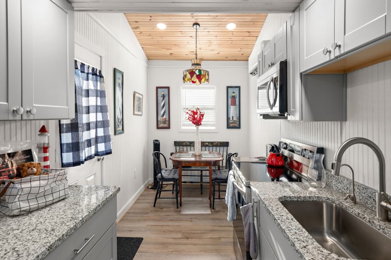 Nestled in the charming community of Broadkill Beach, this delightful coastal home offers a perfect blend of comfort and style, ideal for those seeking a serene retreat. Built in 1950 and thoughtfully renovated in 2021, this residence boasts a timeless appeal with modern conveniences. Step inside to discover a warm and inviting interior featuring three spacious bedrooms and three and a half bathrooms. The heart of the home is a beautifully designed country kitchen, complete with an island, pantry, and a cozy kitchenette, perfect for casual meals or entertaining. The open layout seamlessly connects the kitchen to the family room, where exposed beams add character and warmth. Natural light pours in through the window treatments, creating a bright and airy atmosphere throughout. The primary suite is a true sanctuary, featuring a luxurious soaking tub and a walk-in shower, providing a spa-like experience right at home. Additional interior highlights include plush carpeting, durable vinyl, and elegant hardwood flooring, ensuring both comfort and style in every room. Outside, the property continues to impress with its inviting exterior features. Enjoy the fresh coastal air on the enclosed porch or unwind on the spacious deck, perfect for summer gatherings or quiet evenings under the stars. An outside shower adds convenience after a day at the beach, while a shed provides extra storage for all your outdoor gear. With a lot size of 0.11 acres, this home offers a manageable outdoor space that is easy to maintain, allowing you to spend more time enjoying the nearby Delaware Bay. The stunning bay views create a picturesque backdrop, enhancing the overall tranquility of the property. Parking is a breeze with off-street and driveway options, ensuring you and your guests always have a place to park. This home is not just a residence; it’s a lifestyle, offering the perfect blend of comfort, convenience, and coastal charm. Whether you’re looking for a year-round home or a seasonal getaway, this property is ready to welcome you with open arms. Embrace the coastal living experience and make this charming Broadkill Beach home your own!