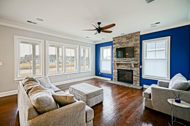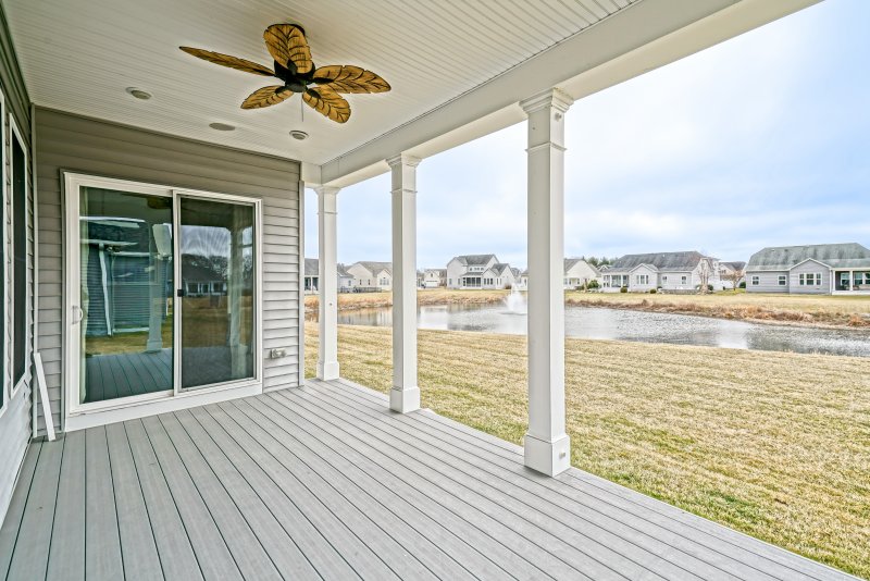 POND-FRONT LUXURY MEETS COASTAL CONVENIENCE! Located in Redden Ridge, this impeccably maintained 4BR/3BA home is perfectly situated between the historic charm of Lewes and the vibrant energy of Rehoboth Beach. The open-concept main level is designed for effortless entertaining, featuring a bright kitchen, cozy fireplace, and massive windows offering serene panoramic pond views. The versatile floor plan includes a spacious first-floor primary suite, two additional main-level guest rooms, and a flexible front room ideal for extra living space or a home office. Upstairs, discover a private retreat with a 4th bedroom, full bath, and an expansive bonus room—perfect for a 5th bedroom, media center, or gym. Modern upgrades include smart thermostats and other features for low-maintenance living. Step outside to the large rear porch to enjoy the water views or take a short stroll to the community pool. Just minutes from the Rehoboth Boardwalk, tax-free outlets, and Cape Henlopen State Park, this move-in-ready home offers the ultimate Delaware beach lifestyle.