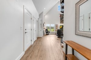 This spacious 3-bedroom, 2-bath home delivers one-level living, yet includes flex on demand with a second-floor bonus loft -- ideal for overflow guests, a home office, or creative studio. The open-plan great room features soaring ceilings and luxury-vinyl-plank flooring throughout, anchored by a custom-built kitchen with leather-finish granite countertops and beautiful wood cabinetry. It's a space built for both entertaining and everyday comfort. The split-bedroom layout places the guest-suite wing apart from the owner's suite -- offering maximum privacy and flow. Outside, the oversized lot is a gardener's paradise .