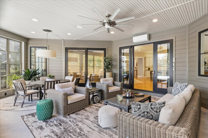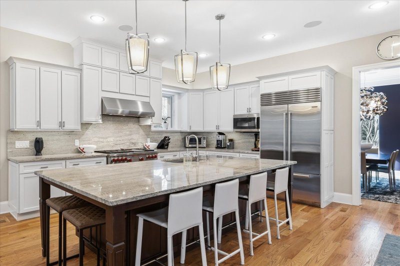 The chef’s kitchen features a 48” Wolf range, Sub-Zero fridge, custom granite, and a full butler’s pantry—perfect for effortless entertaining. Enjoy indoor-outdoor living on the screened porch, sundeck with spiral stairs, private pool, and your own boat dock with lift.