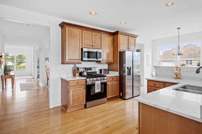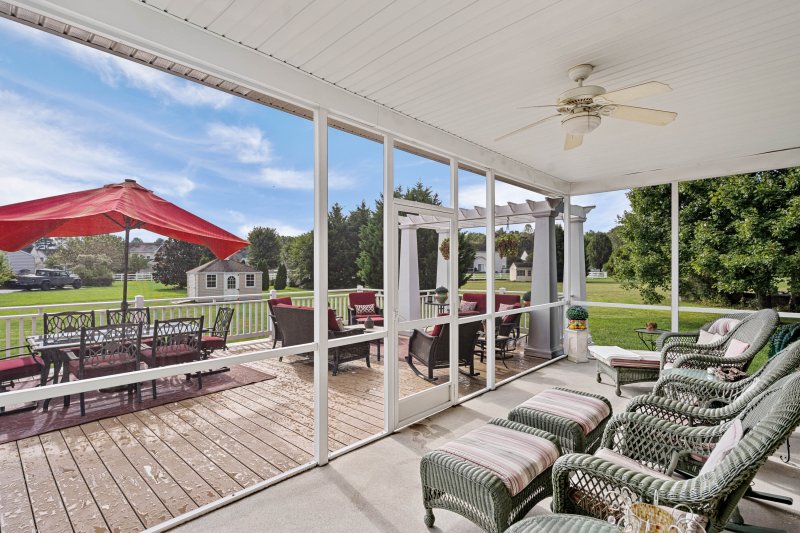 Highlights • Lightly used vacation home • 4 bedrooms | 3.5 baths | main-level laundry • Two-story foyer | hardwood floors | abundant natural light • 9’ ceilings on the first floor | six ceiling fans • Gourmet kitchen with off-white granite, Samsung stainless suite, pantry, and dining area • Family room with 11’ tray ceiling + gas fireplace • Main-level primary suite with porch access & spa bath • Upper level: 3 large bedrooms, 2 full baths, loft/second living area, attic pull-down • Outdoor living: 10’ x 24’ screened porch, 18’ x 38’ TimberTech deck, deep backyard • Exceptional storage: conditioned crawlspace, attic flooring, two-car garage, abundant closets, and 12’ x 14’ Amish-built shed (10’ high)